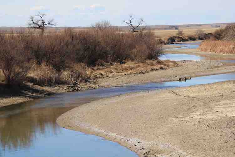 The Arkansas River slithers across the prairie near the remains of Bents New Fort, in southeastern Colorado. Photo credit: Allen Best