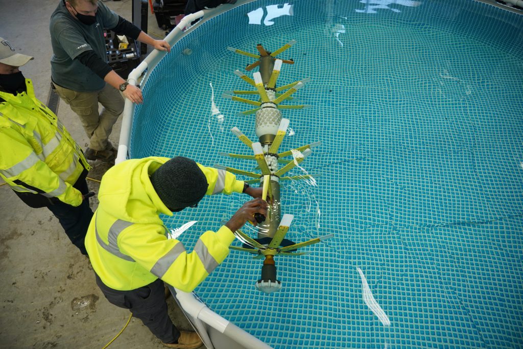 “We like to joke that it looks a little bit like a prehistoric fish,” Hext said. “It does not have a motor and simply uses the flow of the water to move through the pipe.”
