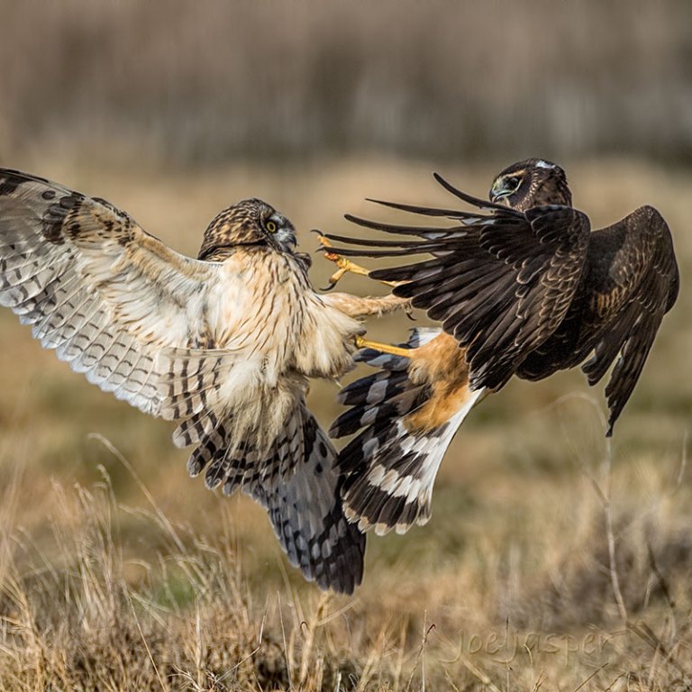 Short-eared Owl and Northern Harrier. Photo: Joseph F. Jasper/Audubon Photography Awards