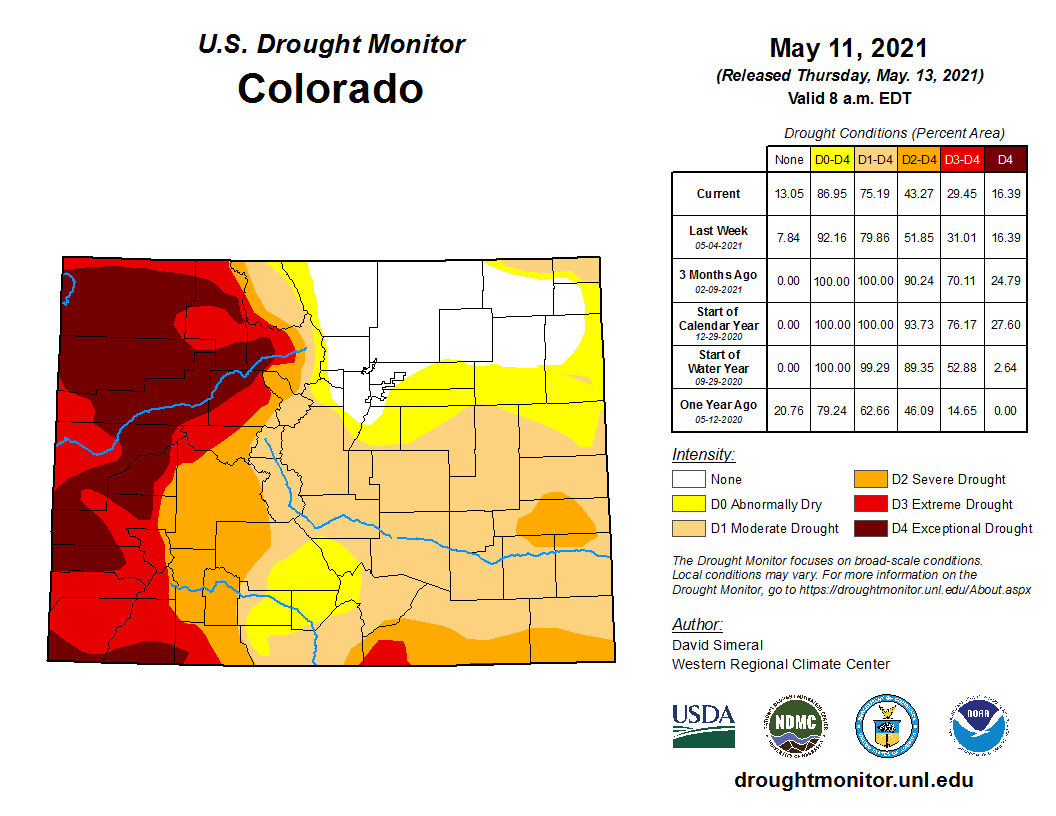 Conditions have improved in the areas around Colorado Springs and Pueblo as well, receding from severe and extreme drought into only moderate drought…