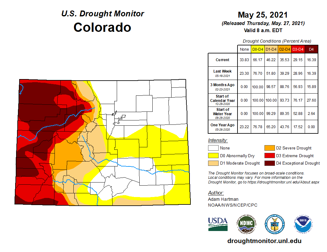 Colorado Drought Monitor map May 25, 2021.