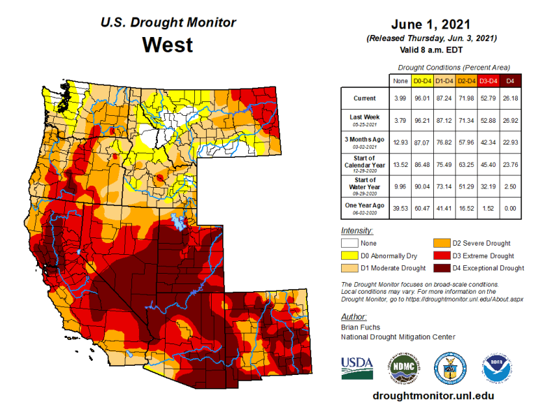 West Drought Monitor map June 1, 2021.
