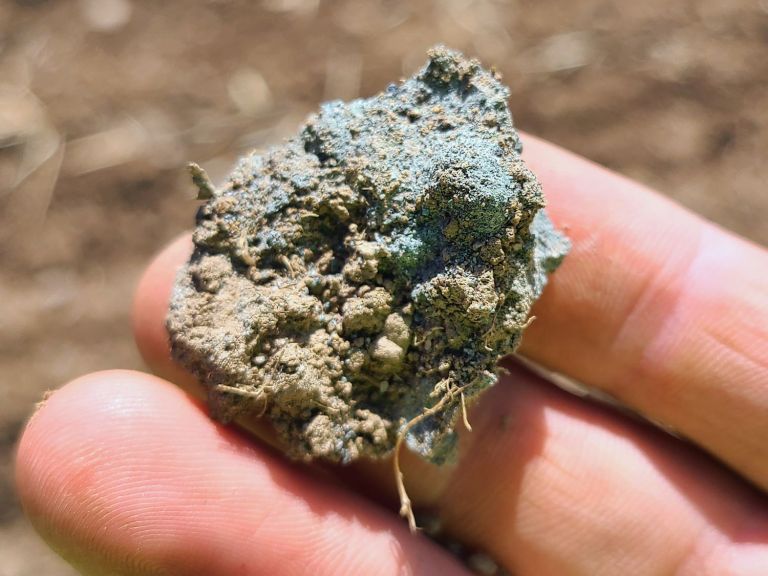 esearcher Zack Kozma gathers a water sample from a field where rock dust has been added to the soil at Cornell’s AgriTech Agricultural Experiment Station. Photo credit: GARRETT BOUDINOTA clump of soil containing rock dust. Photo credit: SOPHIE NASRALLAH