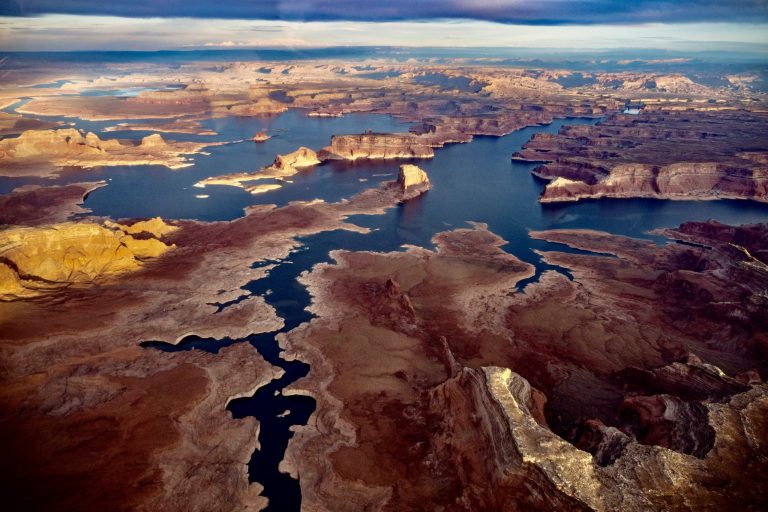 #LakePowell is seen in a November 2019 aerial photo from the nonprofit EcoFlight. Keeping enough water in the reservoir to support downstream users in Arizona, Nevada and California is complicated by climate change, as well as projections that the upper basin states of Colorado, Utah, Wyoming and New Mexico will use as much as 40% more water than current demand. A recent white paper from a lineup of river experts calls those use projections into question. CREDIT: ECOFLIGHT via Aspen Journalism
