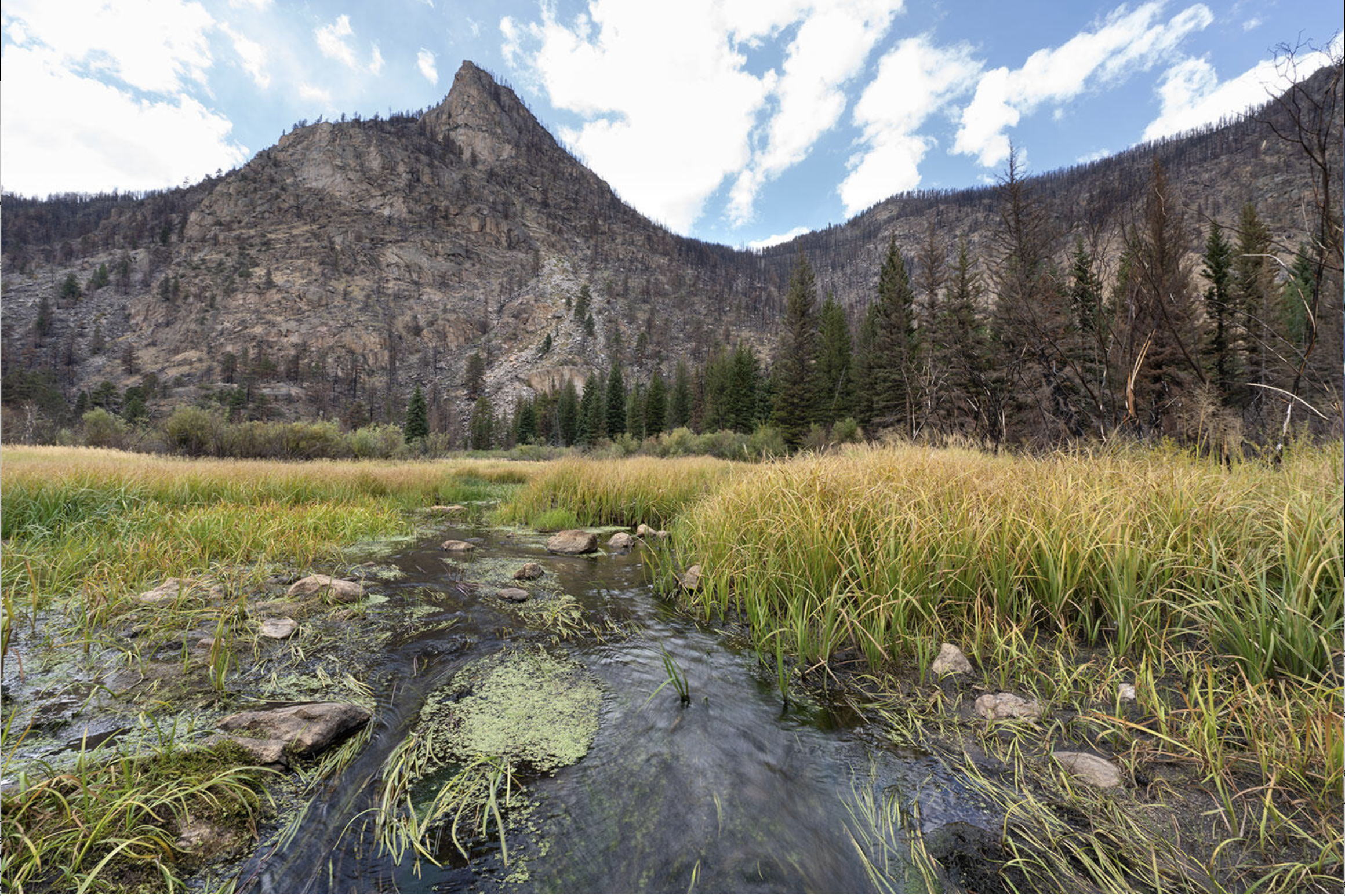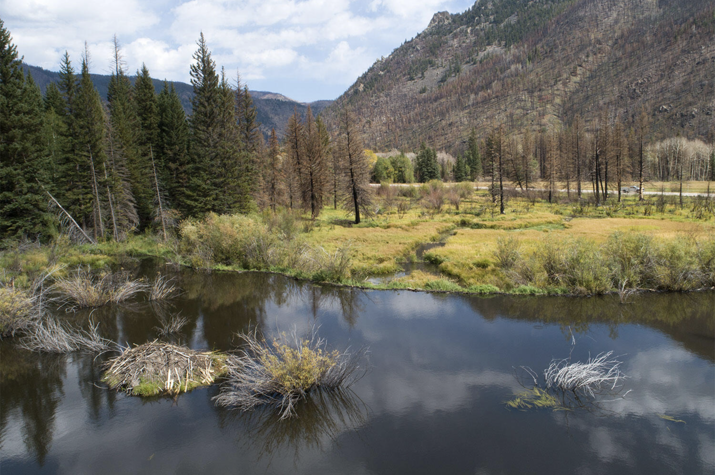 Beaver wetlands allows floodwaters to spread out and sink into the soil. This becomes extra valuable after severe wildfires, which often lead to floods. Photo: Evan Barrientos/Audubon Rockies