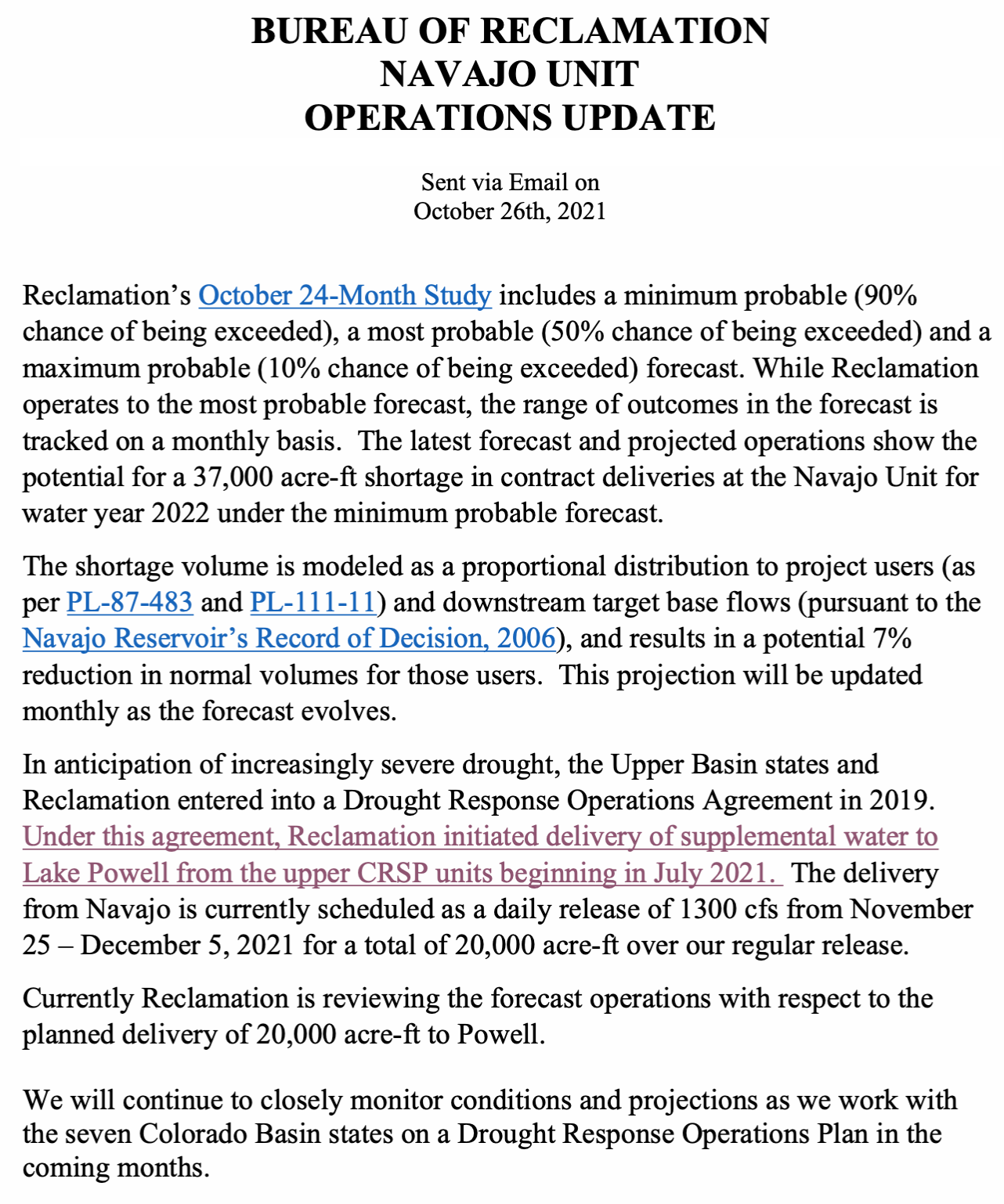 Here’s the release from the Bureau of Reclamation (Becki Bryant and Patti Aaron):
