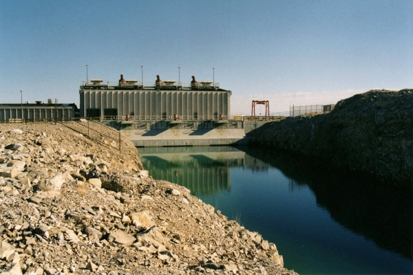 Every bolt, bucket of concrete and load of steel had to be hauled across 30 miles of open desert, through an Air Force bombing range and then down a narrow service road for 10 miles to the site. A natural gas line 37 miles long was installed. A canal was carved, up to 60 feet deep, through four miles of rock, sand and soil.