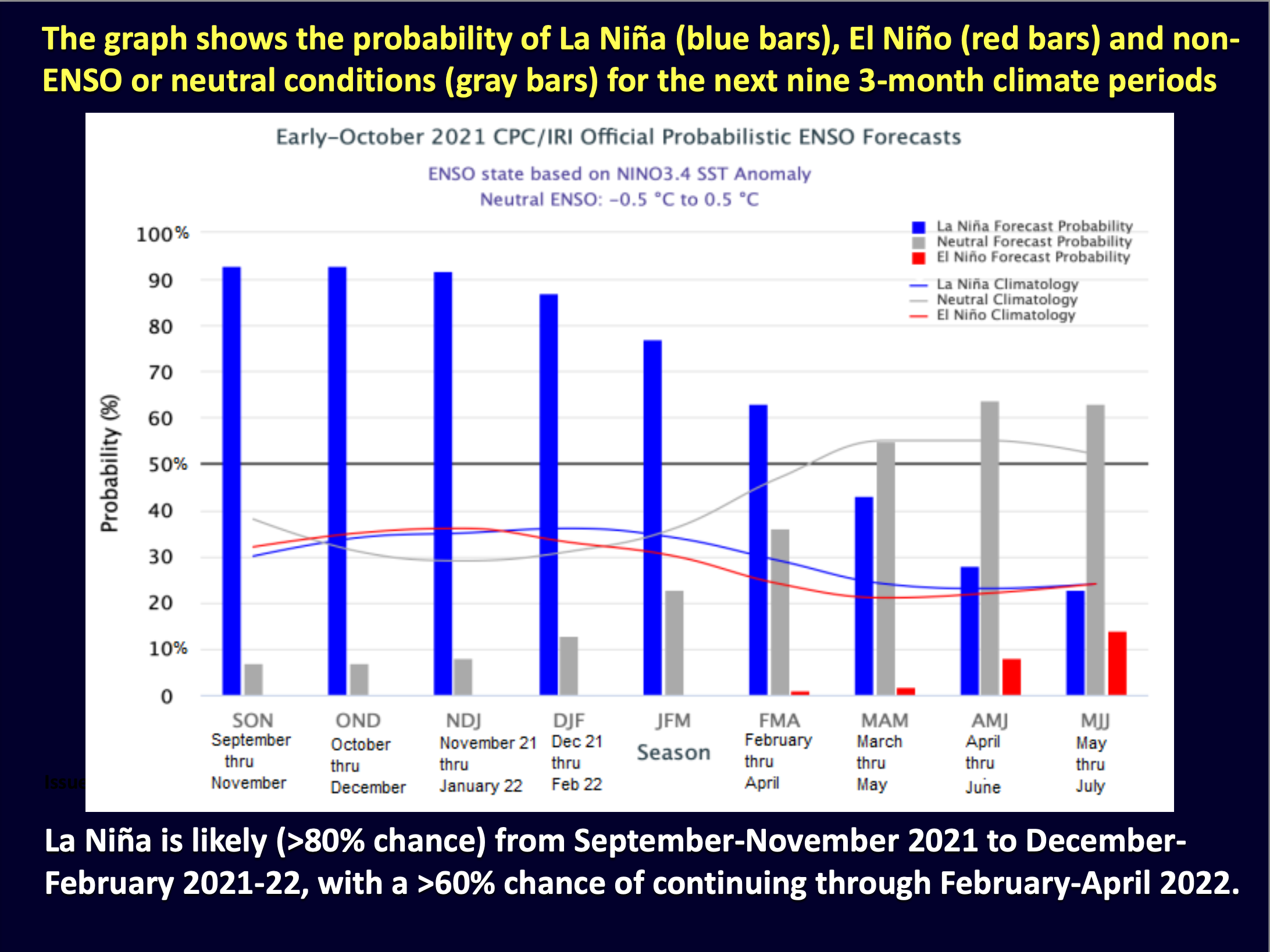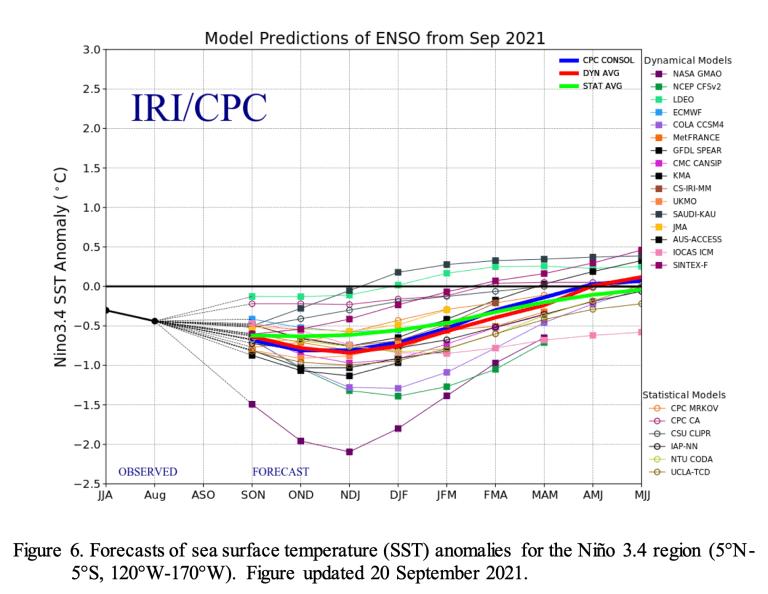 The CPC 6-10 day extended range outlook (October 19 – 23, 2021) favors below-normal rainfall from the eastern Rockies to the East Coast, with weak tilts in the odds toward above-normal precipitation across portions of the Southern Plains and the Florida Peninsula. Enhanced chances of above-normal precipitation are favored along the West Coast inland to the western Great Basin. Above-normal temperatures are favored across much of the CONUS, with the exception of portions of southern and central California, where near to below-normal temperatures favored.