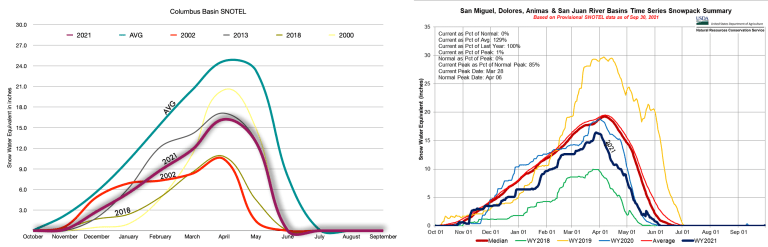 In 2020, the snowpack was 100% but the runoff was 50%. That soil-moisture deficit played into this year’s even worse runoff, 30% of average from a snowpack that was 90% of average.