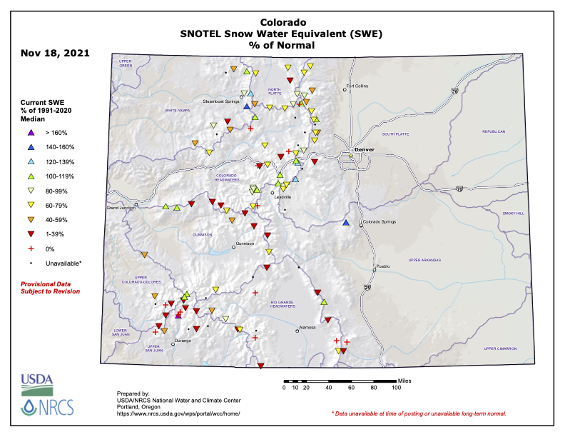 #Snowpack news (November 18, 2021) Colorado Snowpack point map November 18, 2021 via the NRCS. Westwide SNOTEL point map November 18, 2021 via the NRCS. Share this: Share on Bluesky (Opens in new window) Bluesky Share on LinkedIn (Opens in new window) LinkedIn Share on Facebook (Opens in new window) Facebook Email a link to a friend (Opens in new window) Email Print (Opens in new window) Print Share on X (Opens in new window) X Like this:Like Loading...