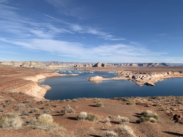 Lake Powell near Page, AZ on December 13, 2021. Inflow into the Colorado River’s second largest reservoir was the second-lowest ever last year and current projections from the Bureau of Reclamation suggest this year could be similar. Water scarcity was a main topic of discussion at a gathering of water managers and experts in Las Vegas this week. CREDIT: HEATHER SACKETT/ASPEN JOURNALISM