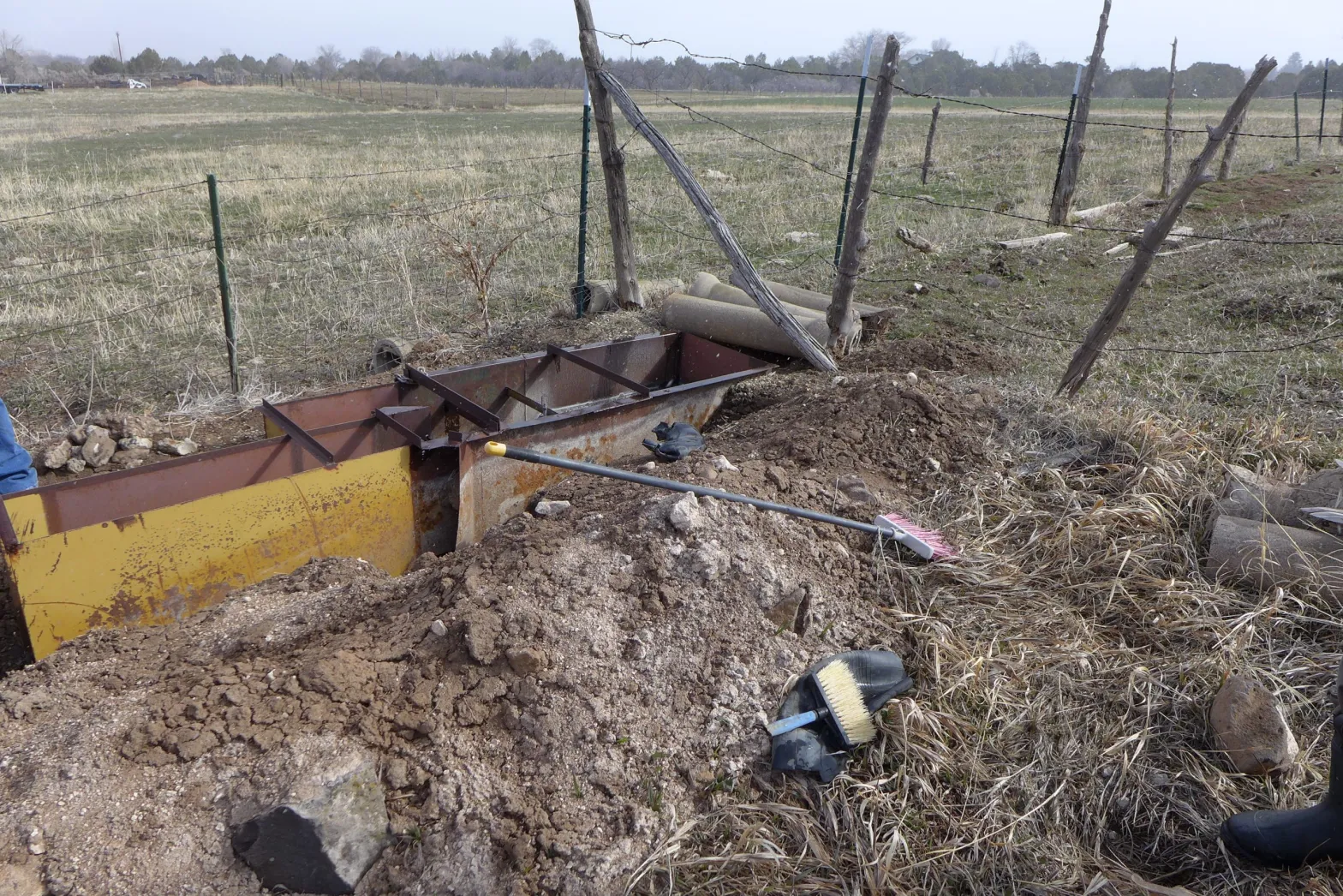 This Parshall flume measuring device is being installed on a ditch on Morrisania Mesa. Ditch inventories, funded in part with state grant money, are becoming popular in western Colorado. CREDIT: HEATHER SACKETT/ASPEN JOURNALISM