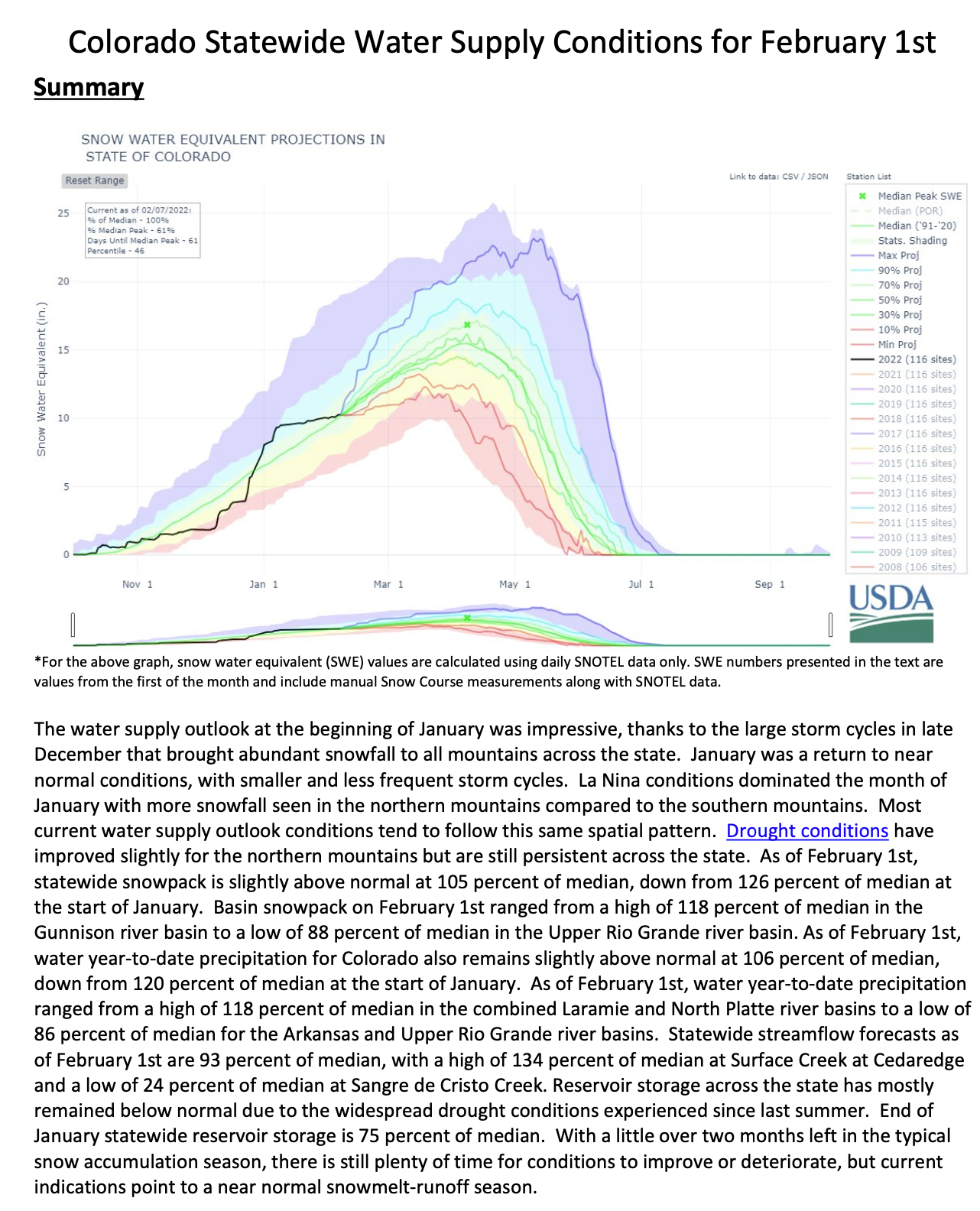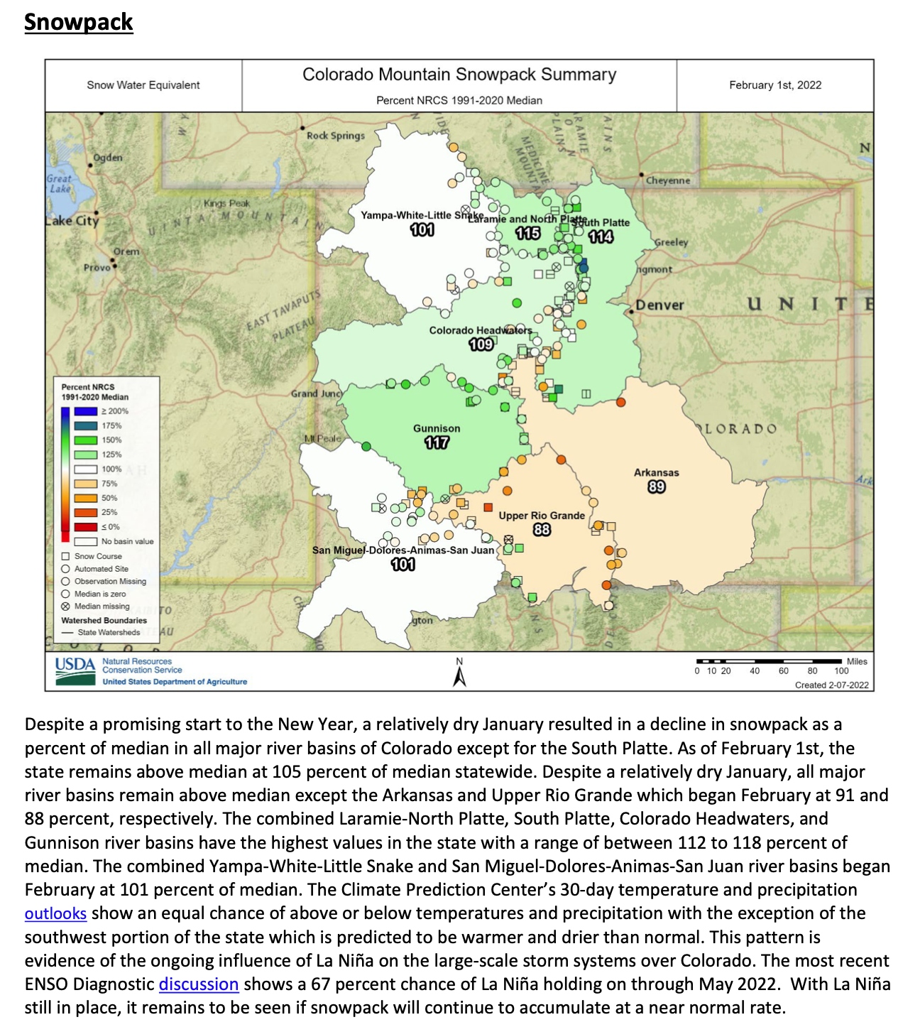 Between early January and early February, Denver (downtown) picked up quite a bit of snow leaving the area close to the average for the date in terms of seasonal snow. More on that below.