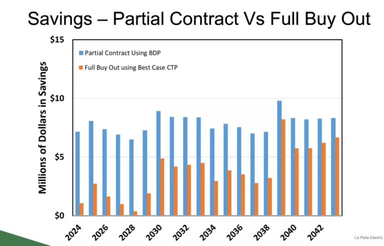 “It’s a great way for us to accelerate our transition to a much less carbon-intensive electricity supply, and hopefully all 50% of La Plata’s generation will be local renewable energy,” he said. He also sees value in exploring the benefits of a full buyout, once that methodology has been approved by FERC.