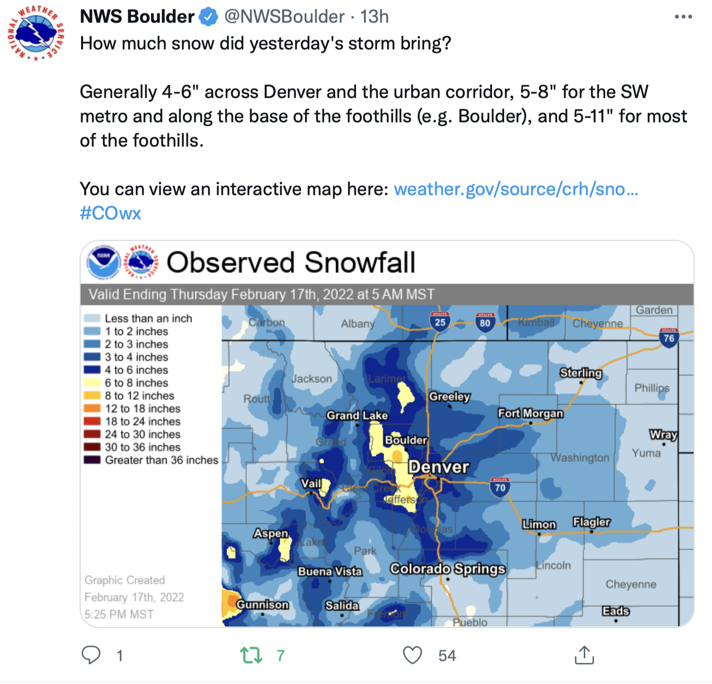 Boulder (3 miles northwest): 7.6 inches