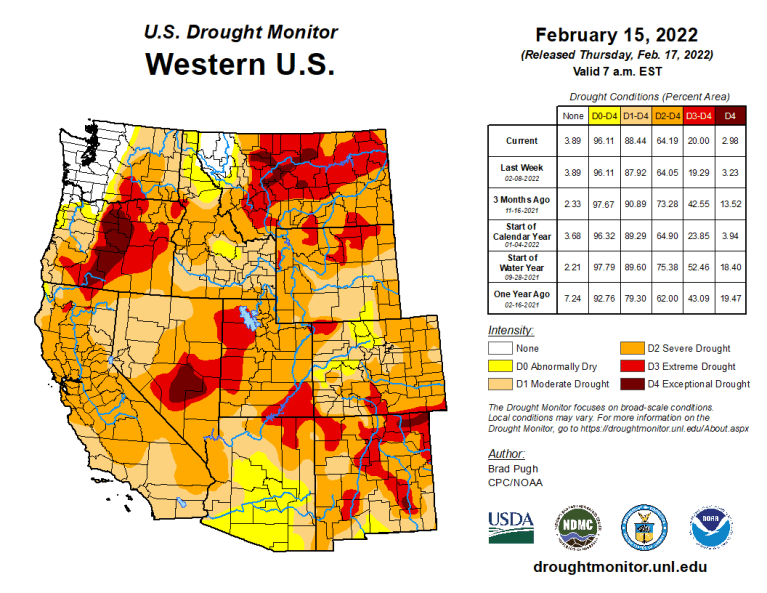 West Drought Monitor map February 15, 2022.