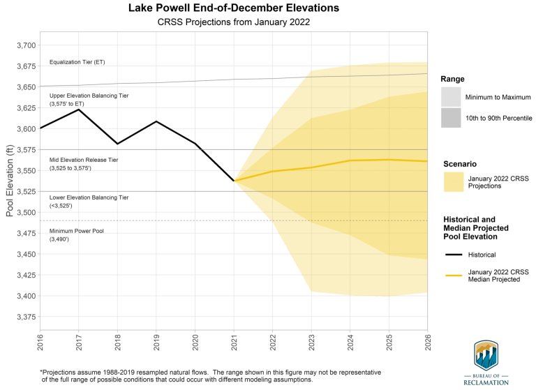 Based on early season projections from the Colorado River Basin Forecast Center (CRBFC), the Bureau of Reclamation has projected the total 2022 unregulated inflow into Blue Mesa will be at 825,000 acre-feet, or 90 percent of average. āHopefully the snowpack will continue to grow so that we do actually see that,ā said Richards.