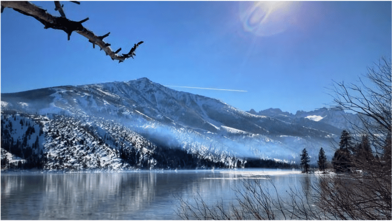 Smoke over Twin Lakes in Mono County, California, on January 24, 2022. Meteorological winter (December through February) was quite warm and dry across the U.S. as drought expanded across the parts of the West in February 2022, including California. (U.S. Forest Service)