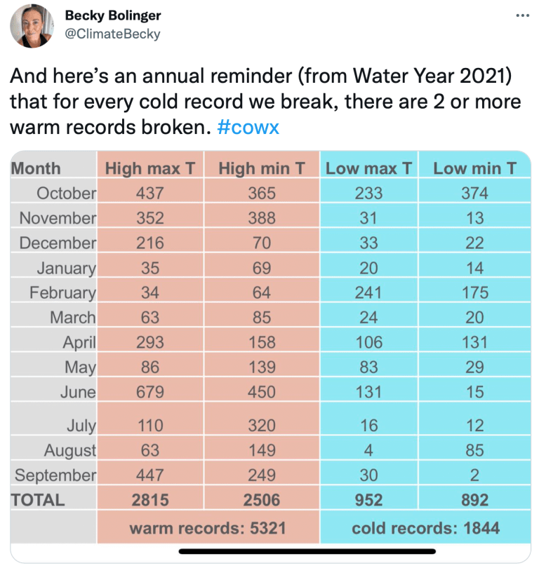 For a glimpse of the bigger picture across the American West, [Becky] Bolinger, also a climatologist with Colorado State University, pointed to the Lake Powell Reservoir, which is already at a record low.