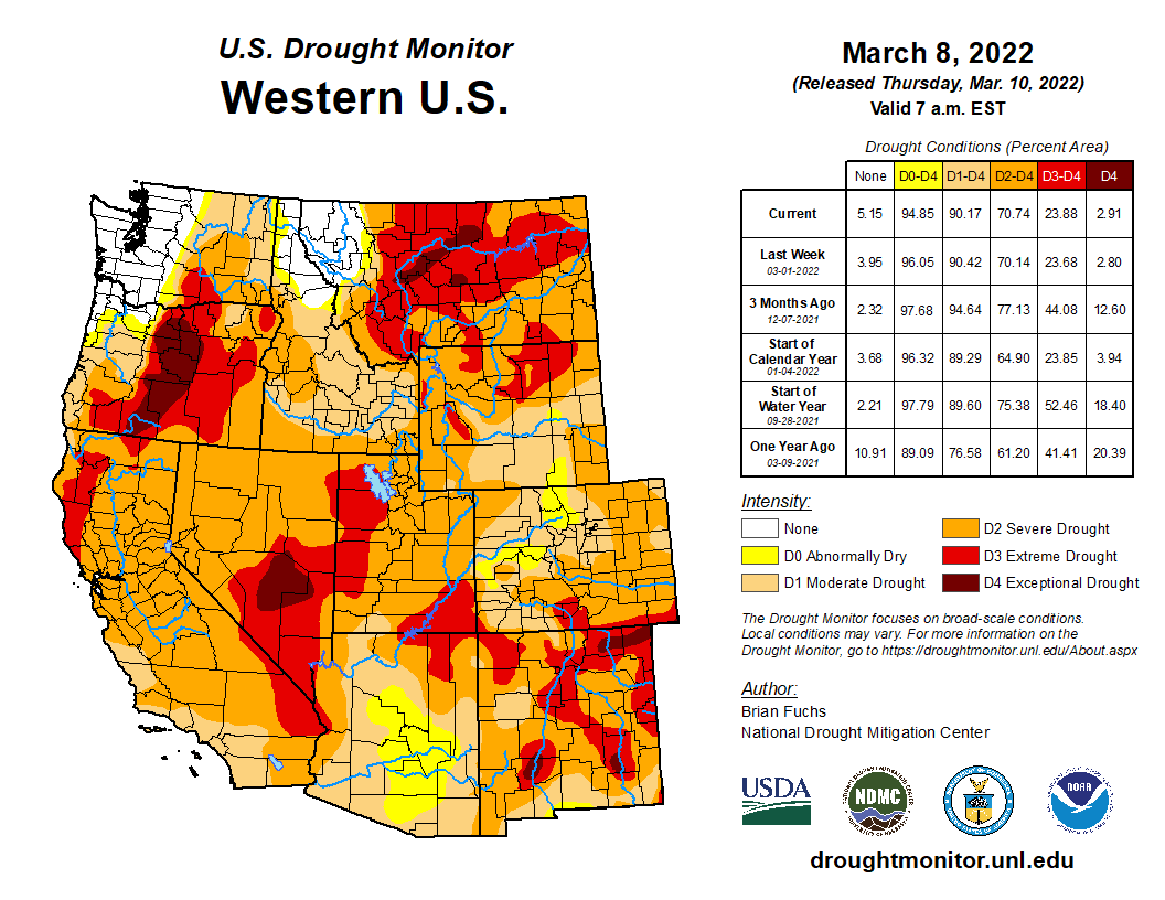 West Drought Monitor map March 8, 2022.