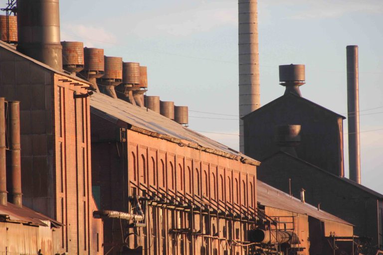 Much of the old CF&I plant at Pueblo remains standing even as a new long-rail mill goes up. Photos/Allen Best
