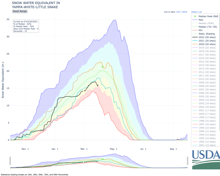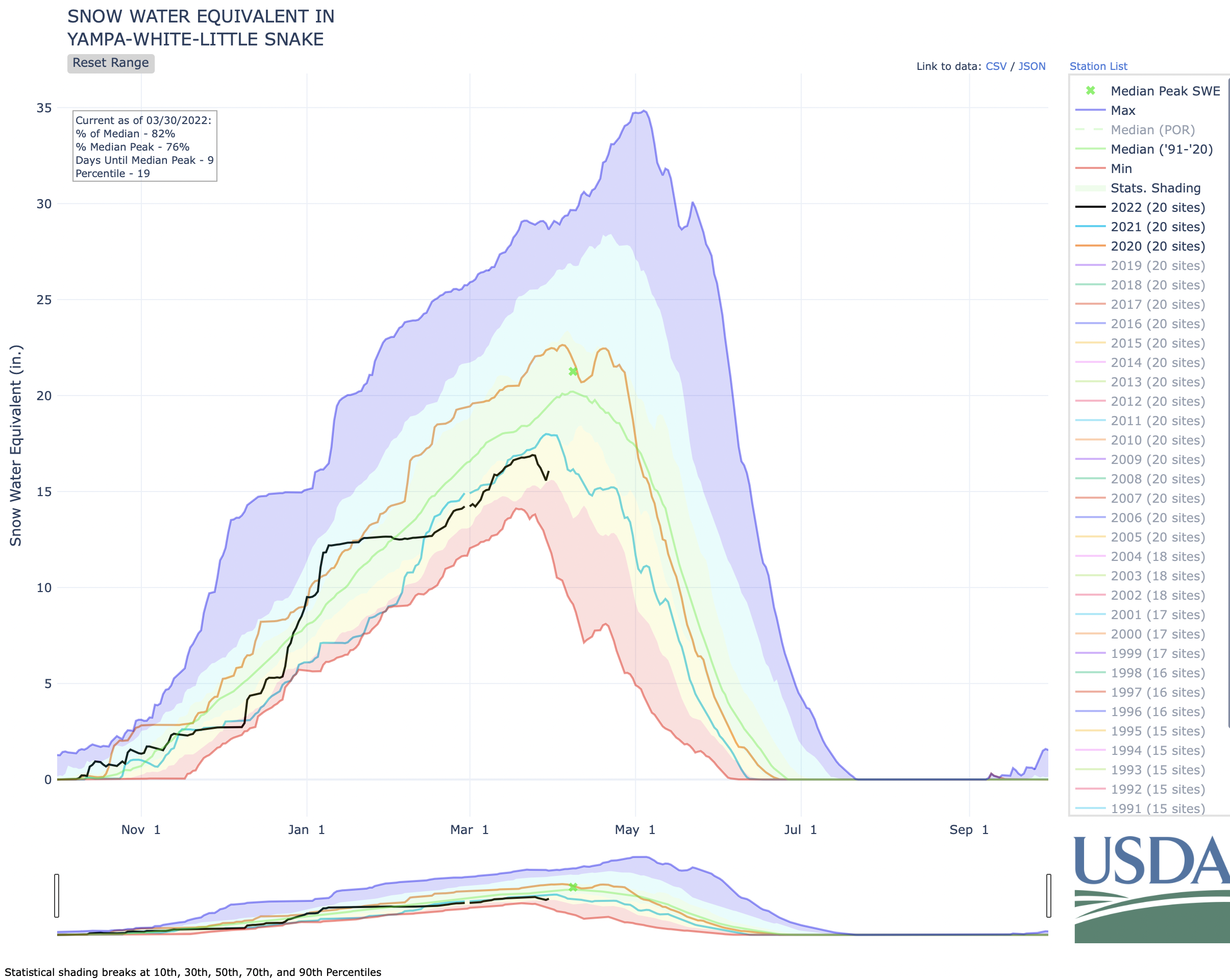 The amount of water in the snowpack blanketing the Yampa River Basin started declining on Friday, March 25, potentially marking the earliest peak since 2017…Erin Light, engineer for the Colorado Division of Water Resources, has put the river under administration three of the last four years. At the Colorado River Districtās State of the Yampa River event last week, she said 2022, so far, is tracking in line with other dry years over the last two decades.