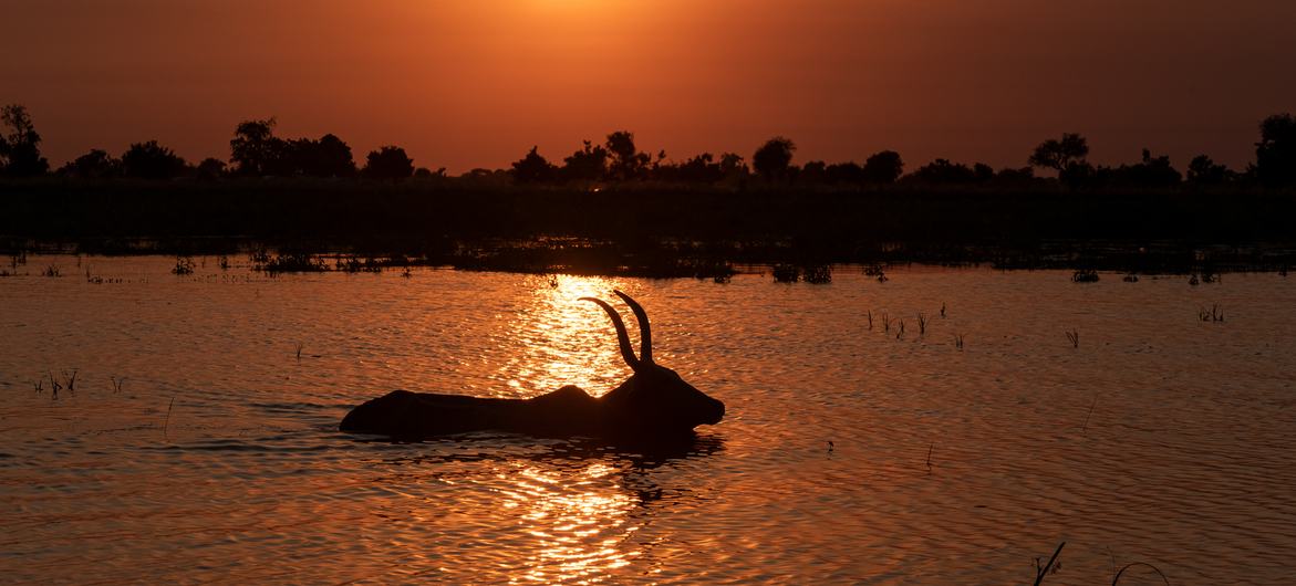 A cow trying to leave an area affected by intense flooding, South Sudan. Credit: UNICEF/Sebastian Rich