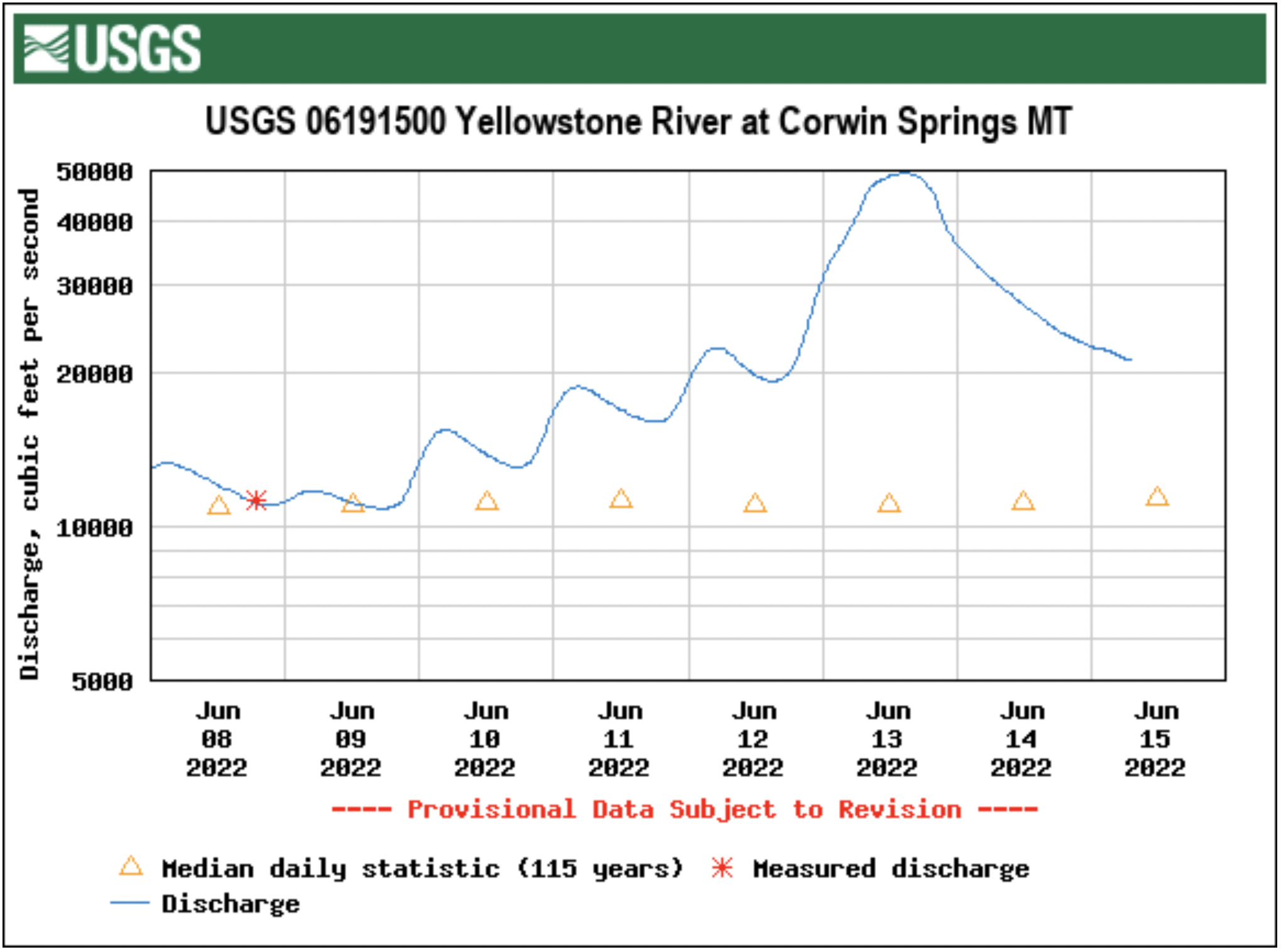 “The Corwin Springs gauge on the Yellowstone, which is just upstream of my house, hit like 52,000 CFS, which is way higher than it’s ever been before,” Larsen said.
