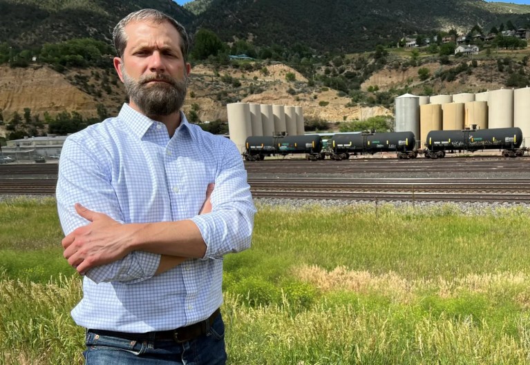 Glenwood Springs Mayor Jonathan Godes near the Union Pacific rail yard just west of downtown. Godes is opposed to oil trains from the Uinta Basin coming through Glenwood Springs.
