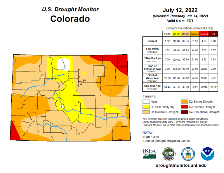 Colorado Drought Monitor map July 12, 2022.