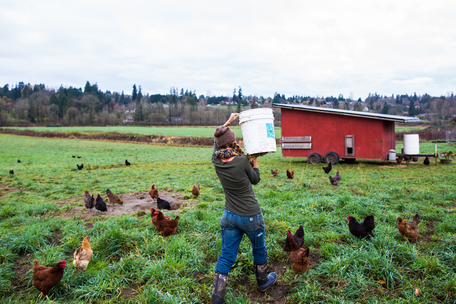 Micha Ide of Bright Ide Acres farm, Washington, practices rotational grazing on her farm. Animals are moved frequently around the pasture to increase soil fertility and enhance the sustainability of the farm. Photo credit: Audra Mulkern