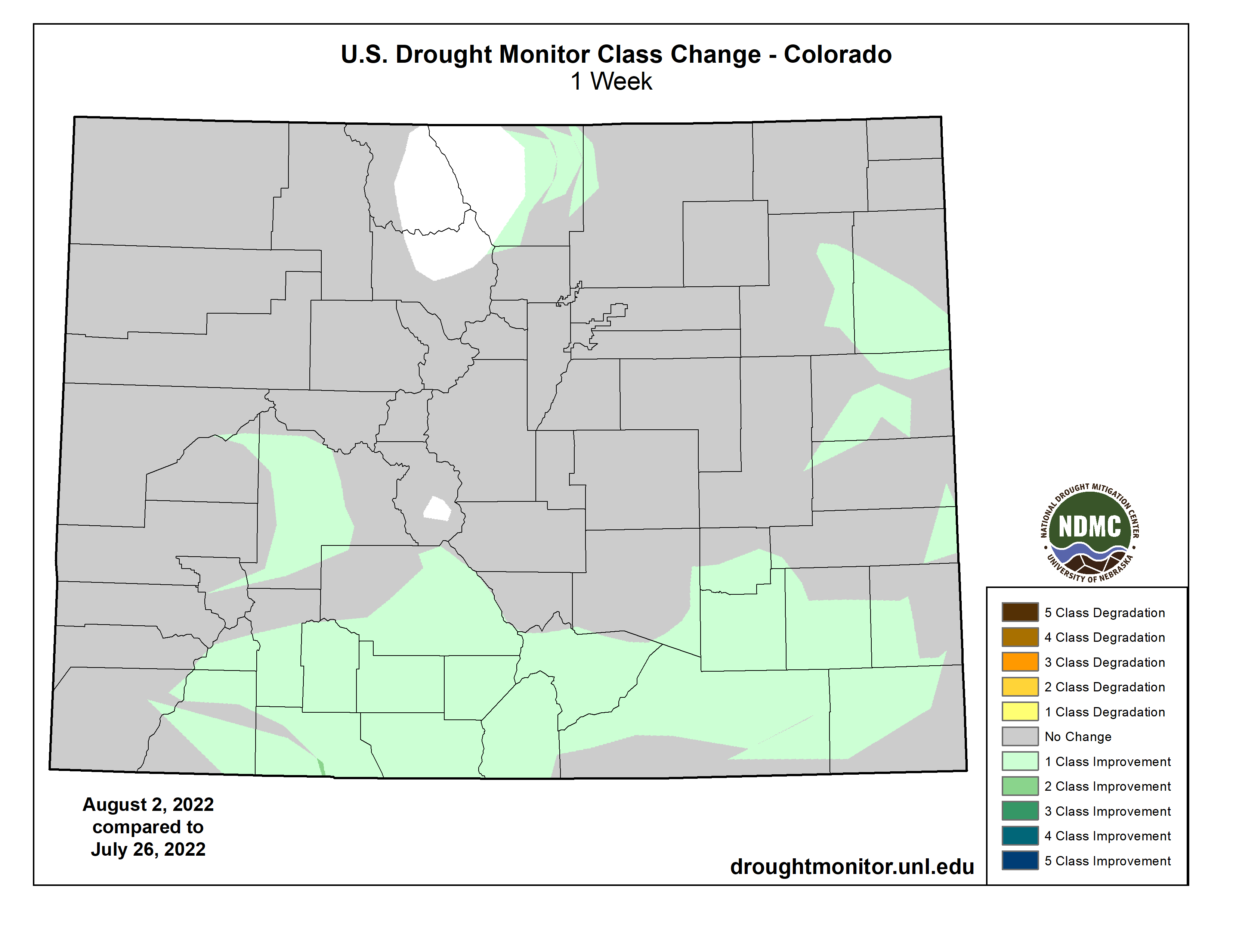 Moderate to heavy rains fell this week across portions of Colorado and western Kansas, related to an active North American Monsoon. Aside from other localized pockets of moderate to heavy rain, the High Plains region saw mostly dry weather this week. Temperatures from 2-4 degrees below normal were common across most of Kansas, southeast Colorado, central and eastern Nebraska, eastern South Dakota, and North Dakota this week. Near-normal temperatures mostly prevailed elsewhere, with parts of western Wyoming experiencing temperatures from 2-6 degrees above normal. The heavier rains in Colorado and western Kansas led to some improvements in ongoing drought, with localized removal of drought occurring, as precipitation deficits lessened. Conditions worsened in parts of southwestern, central, eastern, and northern Nebraska, and in adjacent southern South Dakota, where deficits in soil moisture and precipitation worsened. In Columbus, Nebraska, the Platte River ran dry, indicative of the moderate and severe drought conditions ongoing in and near the eastern Nebraska town. Two reservoirs in eastern Colorado are expected to run dry soon due to drought and water demand from irrigation…