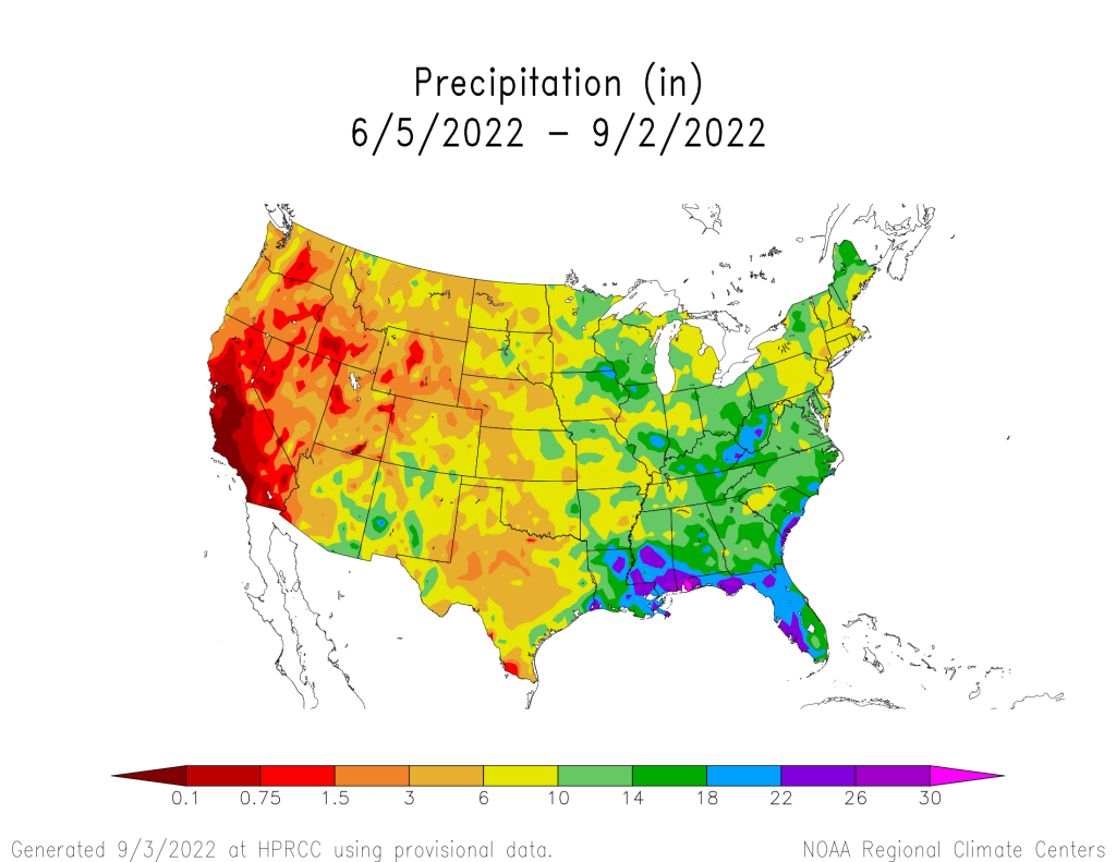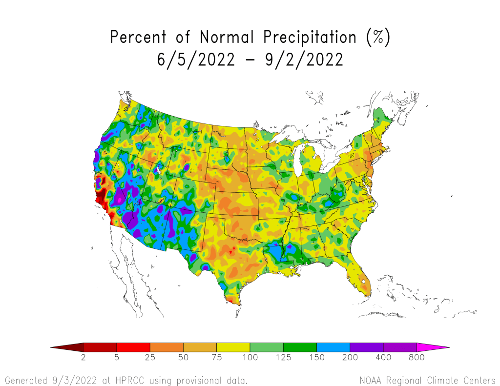 Summer precipitation and percent of normal maps from the High Plains Regional Climate Center (September 3, 2022): Precipitation up and down the spine of the Southern Rockies #COwx
