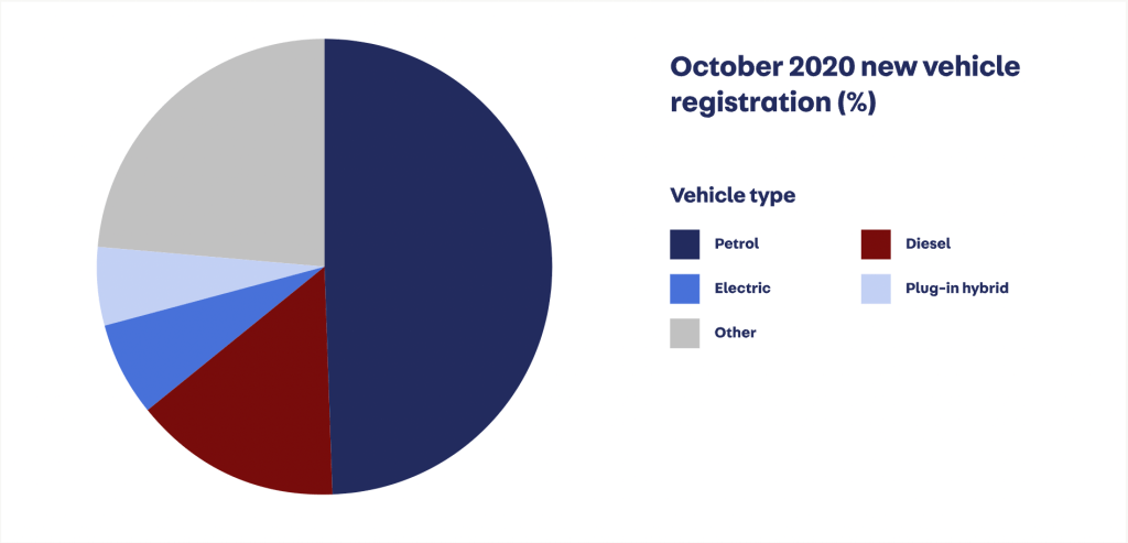 Ahead of the 2030 ban, sales of electric vehicles in the UK are moving in the right direction. In October 2020, new vehicle registrations put electric vehicles on a positive trajectory: