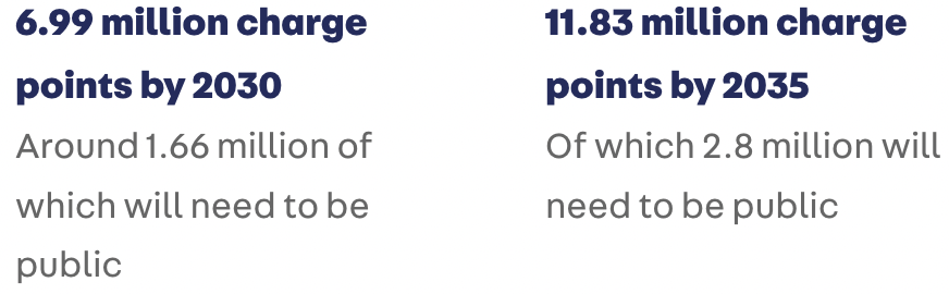Nonetheless, the UK does need a comprehensive charging infrastructure in order to support the move from fuels to electric. SMMT and Frost & Sullivan analysis has revealed that if we assume 24% of the UK car market is electric by 2030 and 41% by 2035, then we’d need:
