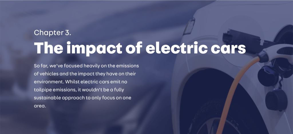 So far, we’ve focused heavily on the emissions of vehicles and the impact they have on their environment. Whilst electric cars emit no tailpipe emissions, it wouldn’t be a fully sustainable approach to only focus on one area.