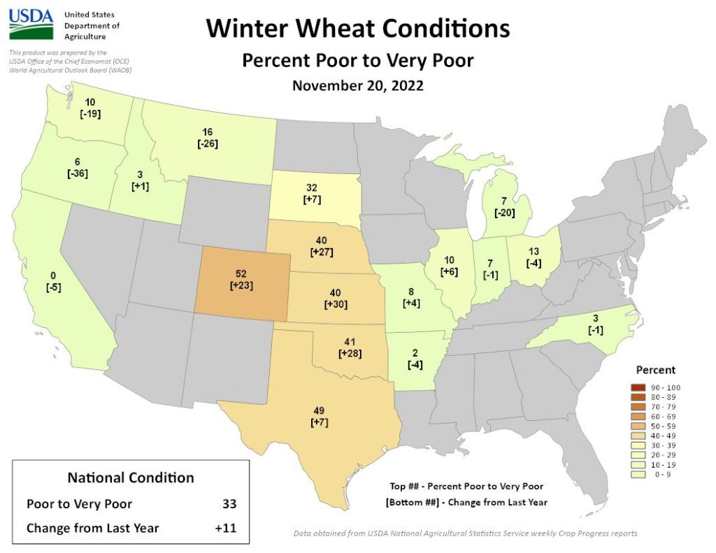 Winter wheat condition is at a record low in the U.S. right now according to @usda_oce