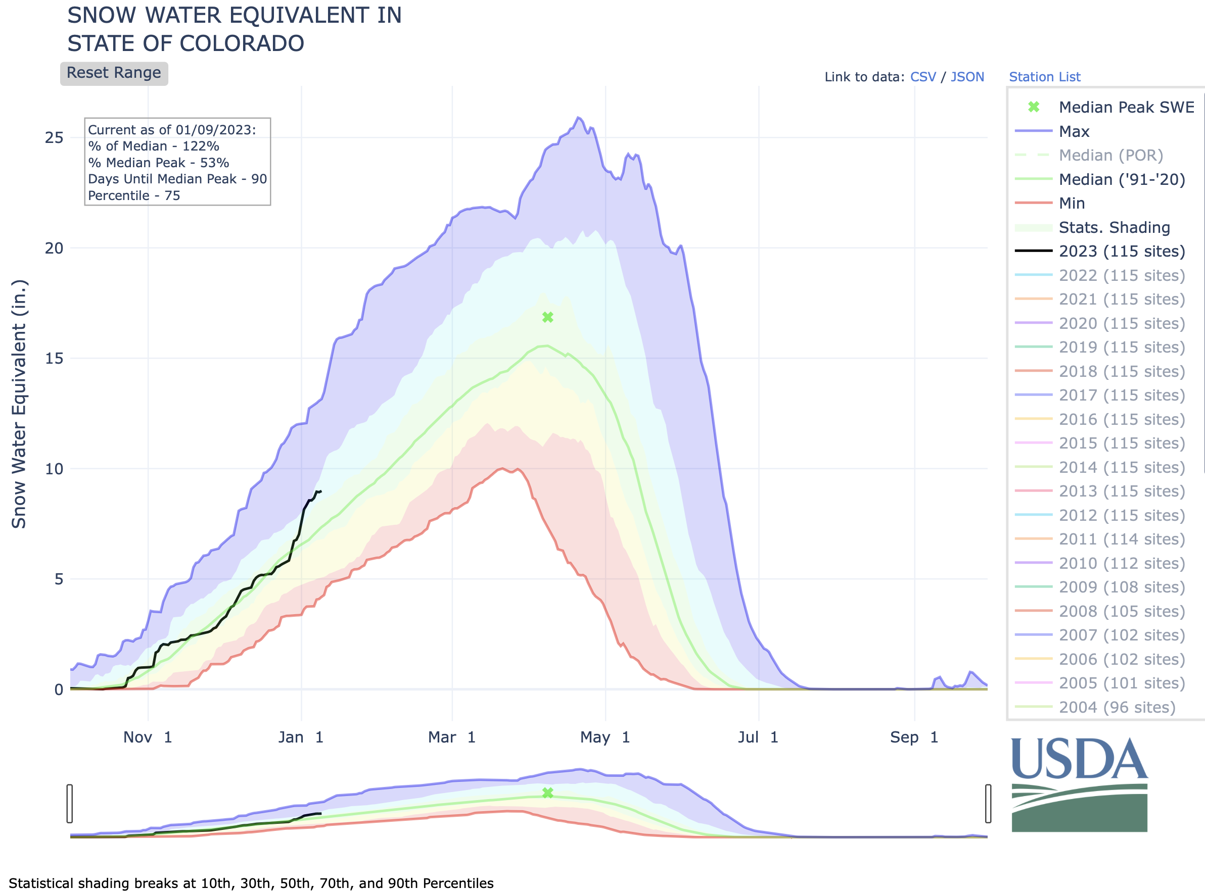 NRCS snowpack basin-filled map January 8, 2023 via the NRCS.