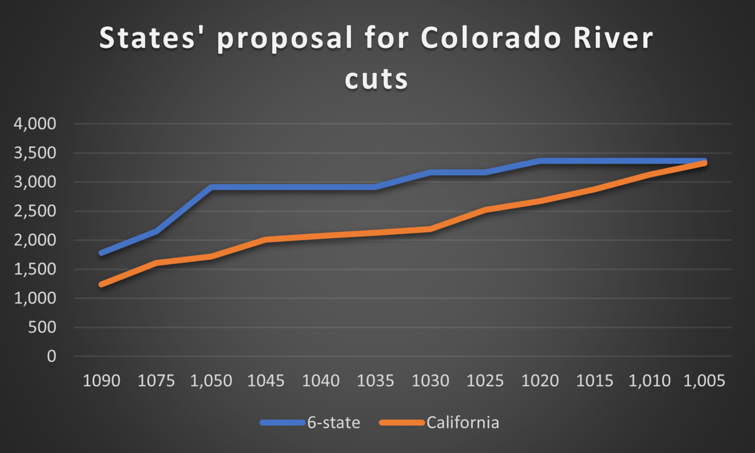 The Compact did two big things: First, it divided the assumed average annual flows of the river between the Upper Basin states (Colorado, Wyoming, Utah, and New Mexico) and the Lower Basin states (California, Arizona, Nevada). The Lower Basin got 8.5 million acre-feet per year; the Upper Basin got 7.5 million acre-feet per year. Mexico was added later, getting 1.5 million acre-feet.