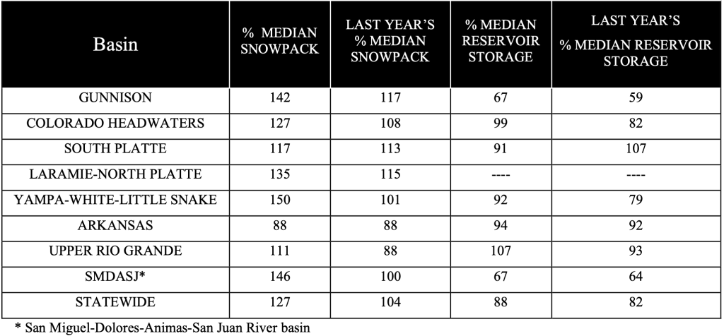 Colorado’s Snowpack and Reservoir Storage as of February 1st, 2023
