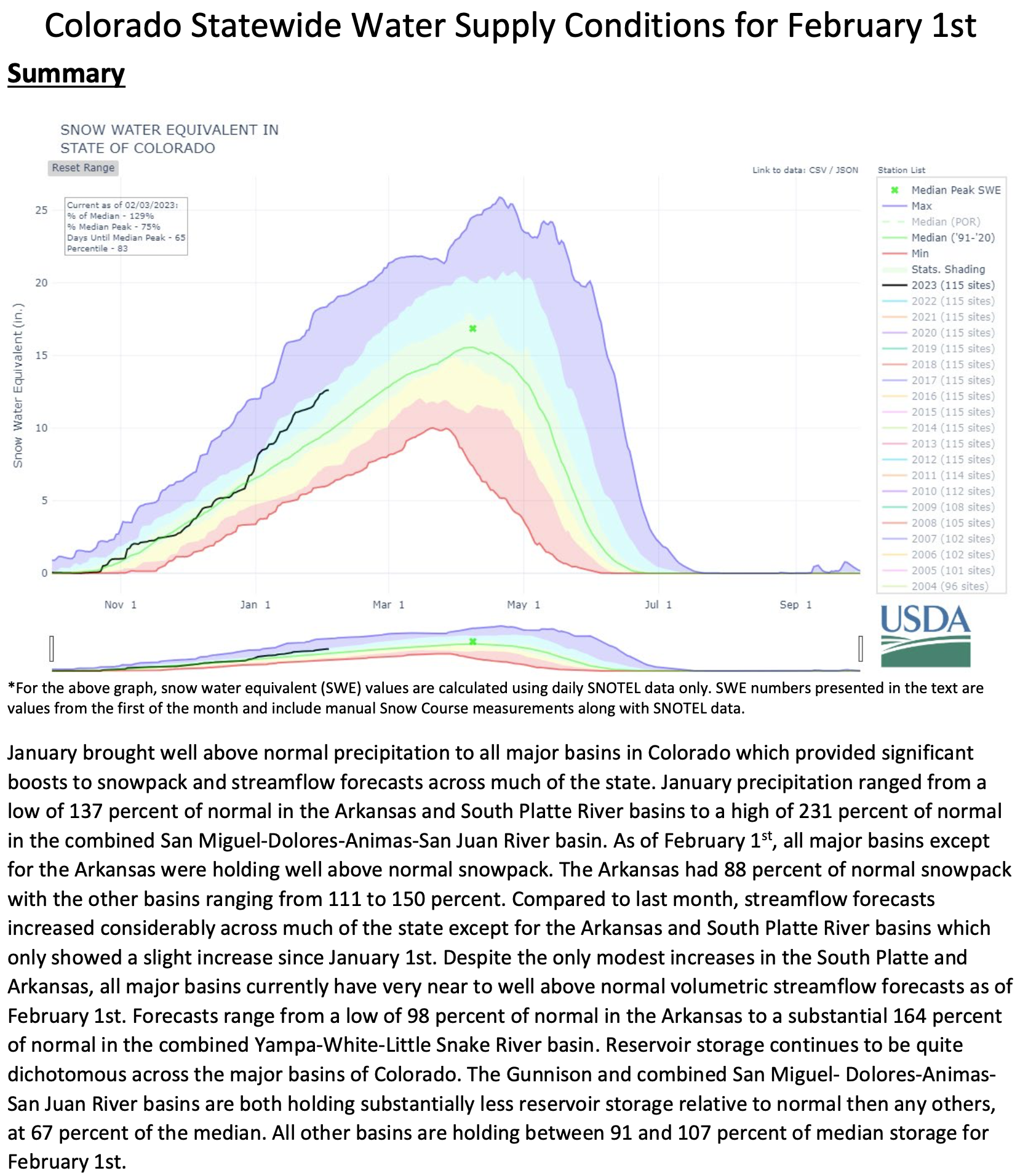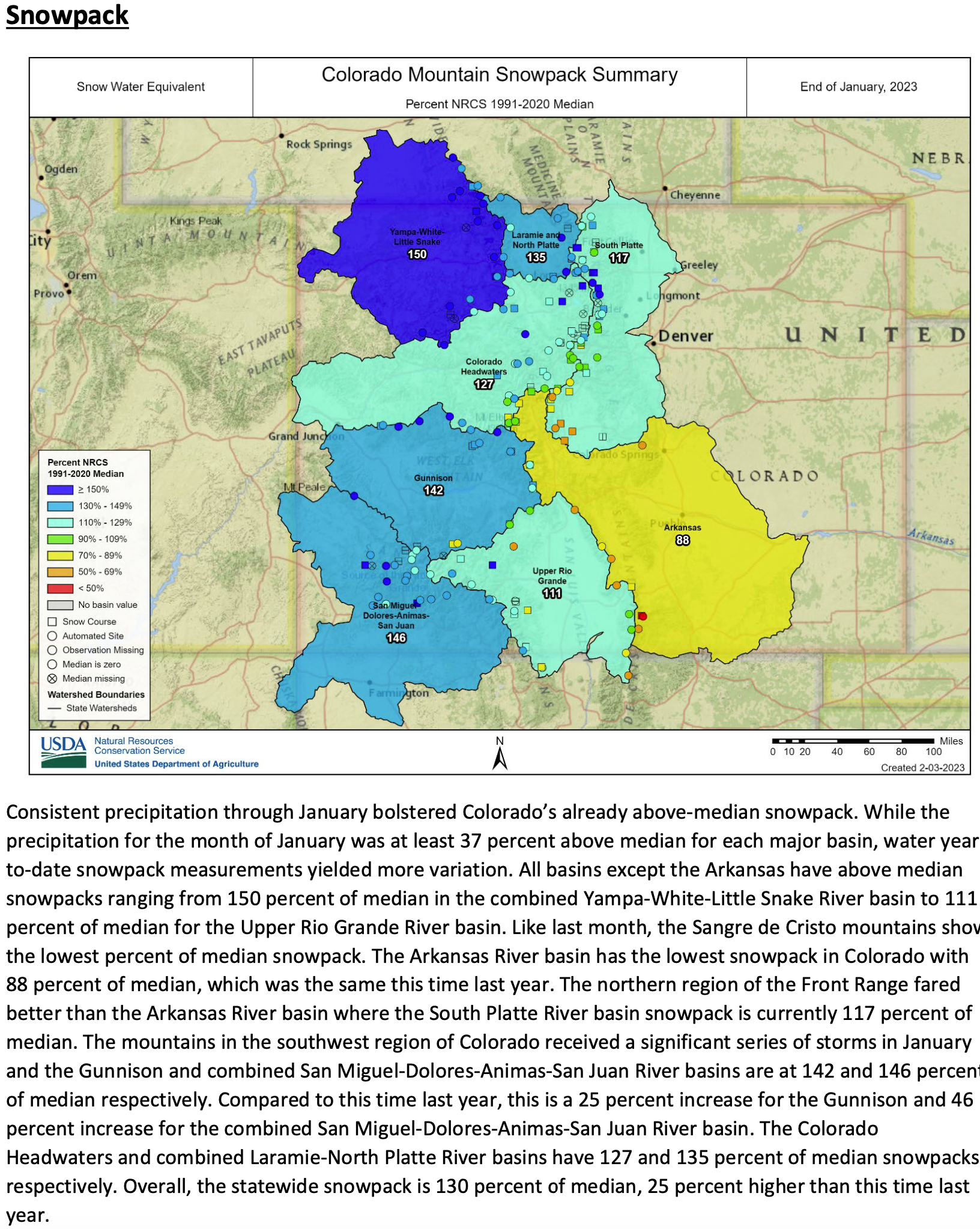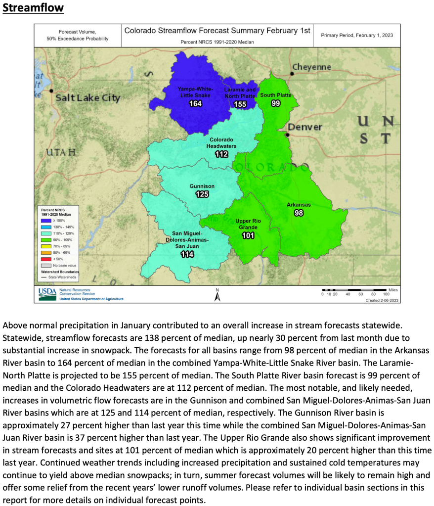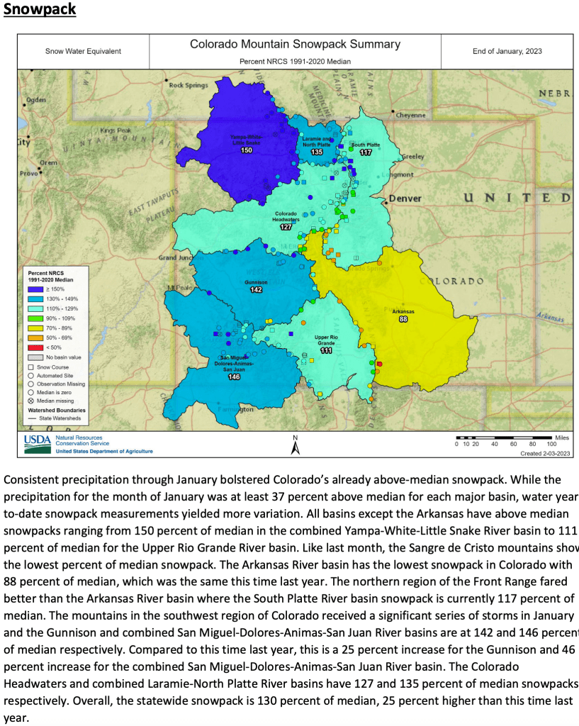 The February 1, 2023 #Colorado #Water Supply Outlook Report is hot off the presses from the NRCS Click the link to read the report on the NRCS website. Here’s an excerpt: Share this: Share on Bluesky (Opens in new window) Bluesky Share on LinkedIn (Opens in new window) LinkedIn Share on Facebook (Opens in new window) Facebook Email a link to a friend (Opens in new window) Email Print (Opens in new window) Print Share on X (Opens in new window) X Like this:Like Loading...