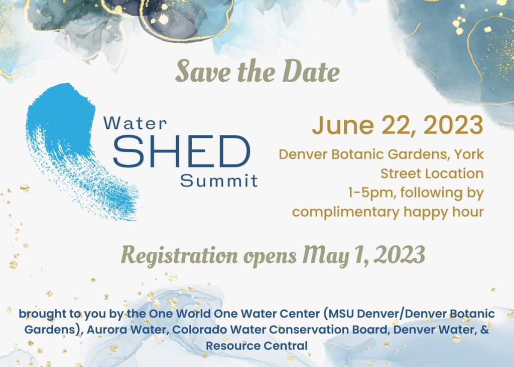 June 22 is the 2023 Watershed Summit. Mark your calendars for a fun filled day of water education and community. Registration will open May 1st — @OWOW_MSUDenver @DenverBotanic @msudenver