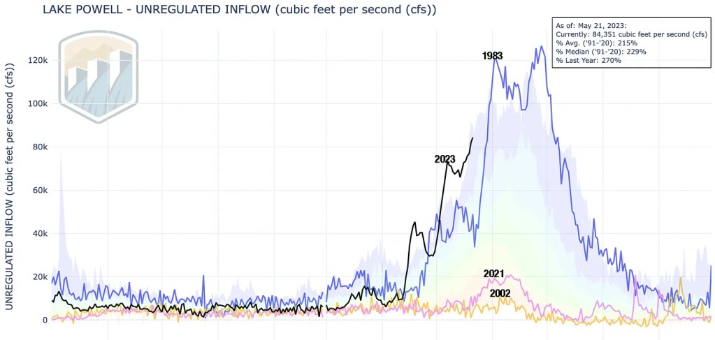 But who knows? Maybe this past wet winter and huge runoff isn’t an anomaly. Maybe it’s the new normal and big rains and snows will come regularly over the next 20 years, filling up the reservoirs, saturating the soil, and swelling the Colorado River into the muddy monster of yore. Maybe we won’t need these cuts after all. But I sure as heck wouldn’t bank on it.
