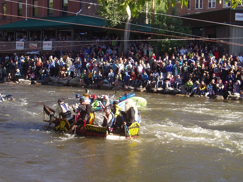 The crowd-favorite event, the Hooligan Race, runs from just north of the Whitewater Park, finishing at the park. Crowds line the riverbanks cheering and jeering as they witness competitors literally try to keep it all together in the homemade craft. Anything that floats (and is not a boat) qualifies.