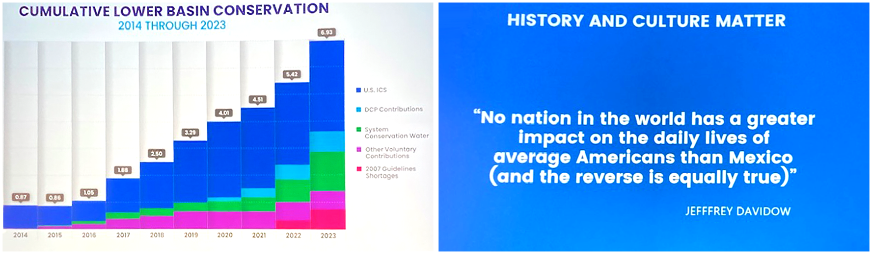 By 2023, however, the amount conserved to protect the system shot up to 6.93 million acre-feet. That staggering conservation figure, he noted, Intentionally Created Surplus water stored by the United States; contributions stipulated in the 2019 Drought Contingency Plan; system conservation efforts and other conservation efforts, as well as water saved under the terms of the ’07 Guidelines.
