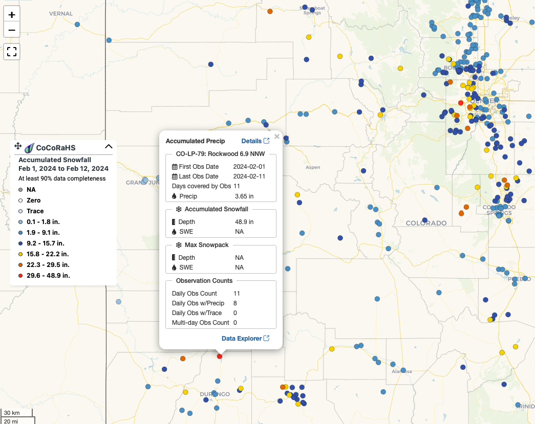 The storm ended and you’re watching the news for totals. They tell you the official amount in Denver (which actually comes from Denver International Airport… or practically Kansas!). They share a short-list of other locations around the state – Boulder, Vail, Greeley. But they missed your town! Okay, make sure you have one of these bookmarked to get at that extra info you’re craving!
