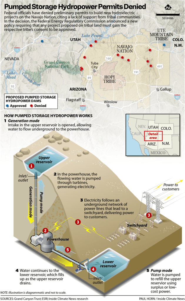 Over a dozen hydro projects have been proposed in recent years on or near the Navajo Nation for pumped storage—a nearly century-old technology experiencing a surge of interest as the U.S. looks for ways to store energy from renewable sources as it pivots away from fossil fuel-generated electricity.