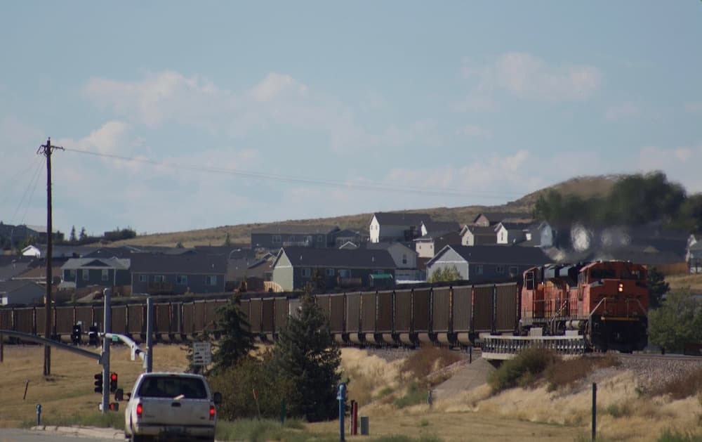 A coal train rolls out of Gillette in 2016. (Andrew Graham/WyoFile)