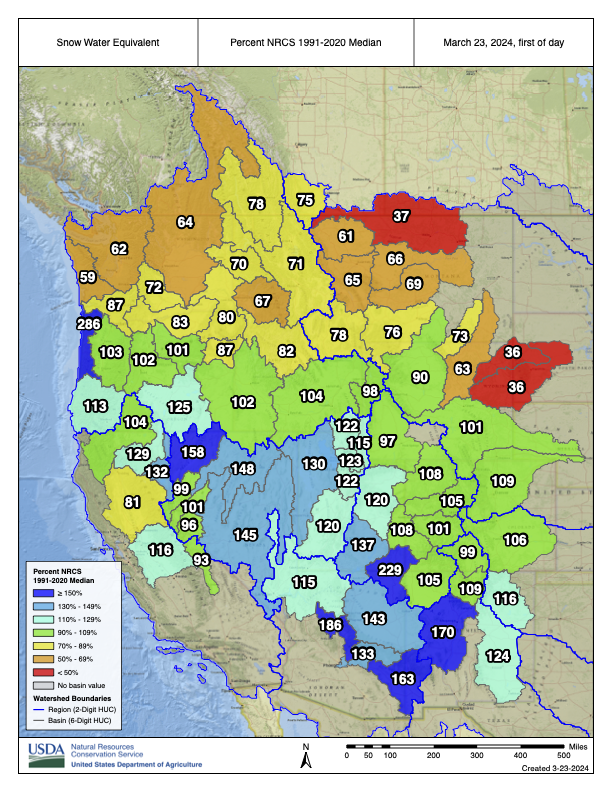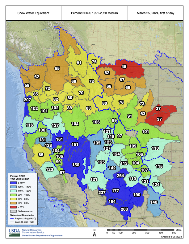On Monday, those federal measurements of โsnow water equivalentโ โ the amount of water held in the snow โ showed snowpack at 108% of the norm in the closely-watched Upper Colorado River Basin.