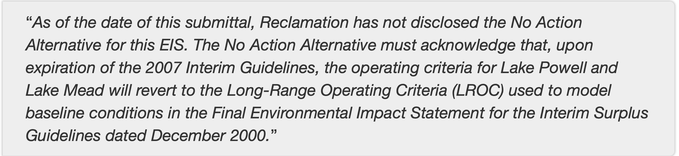 The language quoted by the Upper Division States letter comes from the Record of Decision (RoD) for 2007 Interim Guidelines (Section 8. C.). This termination language was included with the consent of the states. So, the obvious questions are – if the operating criteria are to revert to the LROC, what are the LROC, and what specifically do they mean for the operation of Lakes Mead and Powell?